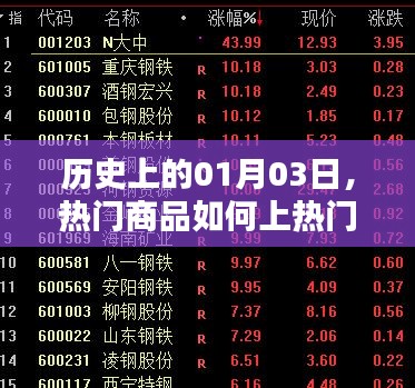 每年的01月03日,都是商业历史上一个重要日子,在这一天,许多商品因为各种原因成为热门话题,引领市场潮流,这些商品是如何一步步成为热门的呢?本文将为您揭示背后的故事。