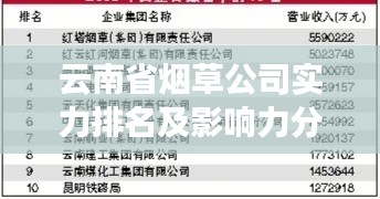 云南省烟草公司实力排名及影响力分析,揭秘烟草行业的佼佼者