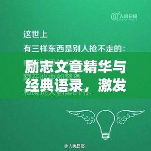 在这个充满挑战与机遇的时代,我们都需要一些励志的力量来鼓舞自己前行,本文将带您领略一系列励志文章,它们将激发您的潜能,让您在人生的道路上更加坚定前行,在这篇文章的简介中,我们将为您呈现这些文章的精彩内容,并分享其中的励志语录,希望能为您带来正能量和启发。
