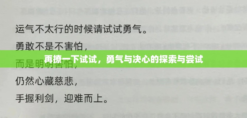 "再撩一下试试",这句话透露出一种勇气和决心,是对未知的渴望和探索,在这个日新月异的时代,我们需要不断地挑战自己,尝试新的事物,才能不断进步,无论是学习新知识,还是发掘新兴趣,都需要这种勇气和决心。"再撩一下试试"不仅仅是一种行动,更是一种精神。